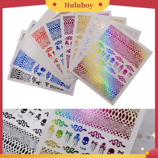 Huluboy Huluboy♡ 9 Pcs / Set Stiker Kuku Motif Print Ular Efek 3D Warna Hitam Untuk Dekorasi Manicure