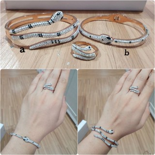 Gelang cincin Titanium asli motif ular Mata kilau Premium Quality Mata Kilau Mirip emas asli Anti karat Anti Alergi branded Stainless Steel Ori Gt802