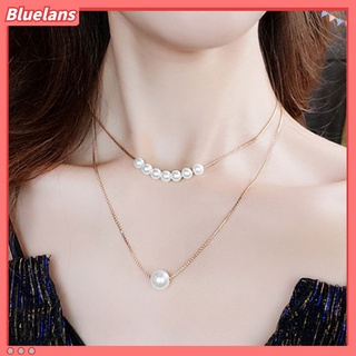 Kalung Rantai Klavikula Liontin Mutiara Tiruan Lapisan Ganda Gaya Simple Untuk Perhiasan