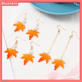 1 Pasang Anting Kait Rantai Rumbai Desain Daun Maple Aksen Mutiara Tiruan Warna Oranye Untuk Hadiah