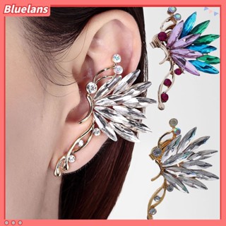 1 Pc Anting Klip Telinga Bentuk Kupu-Kupu Aksen Kristal Tiruan Shiny Warna-Warni Untuk Pengantin