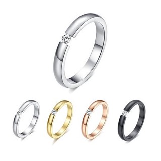 Cincin Berlian Tunggal Bahan Titanium Steel Ukuran 3mm / 4mm | Cincin Berlian Bahan Stainless Steel Model Lebar | Kotak Hadiah Untuk Hadiah
