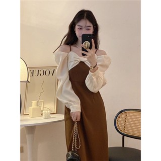Red Angin lembut gaun dua potong ikatan simpul palsu wanita musim semi dan musim gugur gaya rok gemuk mm figur berbentuk buah pir gaun Prancis retro