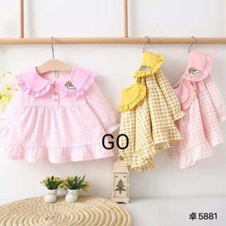 gos DRESS CLOUD KOTAK RAINBOW 5881 EBV Baju Dress Anak Perempuan Import