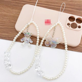 3d Hologram Transparan Hewan Beruang Lucu Kupu-Kupu Telepon Rantai Manik-Manik Mutiara Untuk iPhone Android OPPO VIVO Huawei Xiaomi Redmi Samsung Tali Anti Hilang