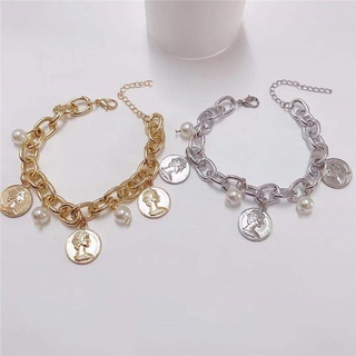 Gelang Tangan Rantai Gaya Hip Hop Aksen Liontin Kepala Perempuan Untuk Perhiasan Wanita