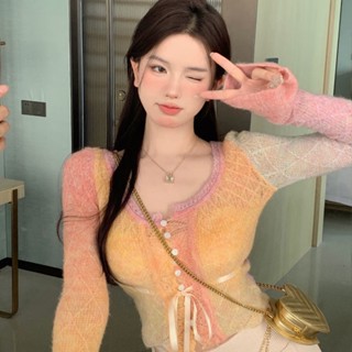 Red 2022 Baru Lengan Panjang Rajutan Cardigan Wanita Musim Gugur Seksi Gadis Panas Dasi Slim Fit Pendek Bottoming top