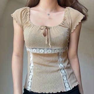◑☜✎Suhao BIIKPIIK jahitan satin ceruk rasa desain t-shirt pendek wanita manis dan pedas seksi korset memakai bottoming top