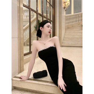 Gaun Wanita Versi Korea Fashion Temperamen Seksi Tube Top Rok Panjang 2022 Musim Semi Satu Bahu Slim Hitam Tas Hip Rok
