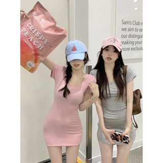 Red Keinginan murni elastis ketat lengan pendek gaun wanita musim panas slim u-neck bag hip rok kecil rok a-line seksi