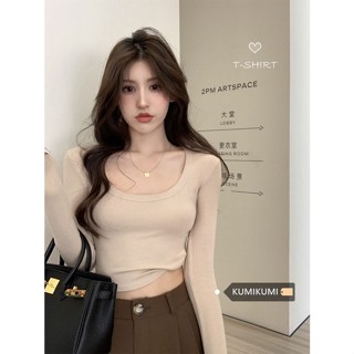 ♟❃✱#COD Suhao Eropa dan Amerika babes seksi rajutan T-shirt wanita musim panas pendek tinggi pinggang terkena pusar ketat lengan panjang bottoming shirt top