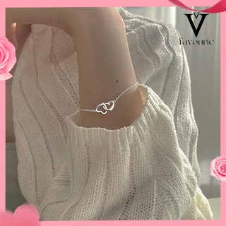 [COD]Double Heart Shape Fashion Indah Mengkilap Manis Gelang Perhiasan Wanita-FA
