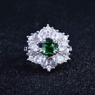 Goldkingdom Aksesoris Perhiasan Fashion Ready Stock Cincin Biru Royal Alami Nenek Imitasi Karat Besar, Harta Karun Warna Persegi Hijau Gemuk, Cincin Terbuka Perempuan