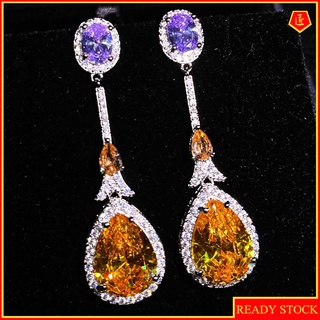 [Ready Stock]Fashion Colored Gems Champagne Diamond Morganite Earrings