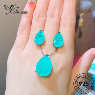 Jewelrypalace Emerald Asli925 Bentuk Perak Wanita Kalung Drop Set S533