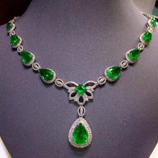 Goldkingdom Fashion Perhiasan Aksesoris Ready Stock Mewah Baru Alami Emerald Berbentuk Pir Kalung Micro Bertatahkan Berlian Untuk Wanita