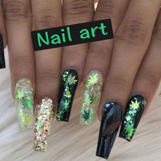 AUGUSTINA Agustina Dekorasi Nail Art 3D Gadis Warna Warni Pohon Hijau Daun Flax Leaf DIY Ornamen