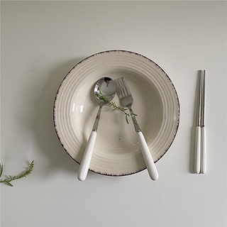 1pc Peralatan Makan Sendok Garpu Sumpit Bahan Keramik Stainless Steel Warna Putih