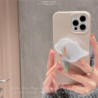 IPHONE Soft Case Cover Ponsel Warna Solid Khaki Desain Simple Dengan Holder Bunga Lily Untuk Iphone7 8 PLUS X XR XS 11 12 13 14 MINI PRO MAX SE 2020