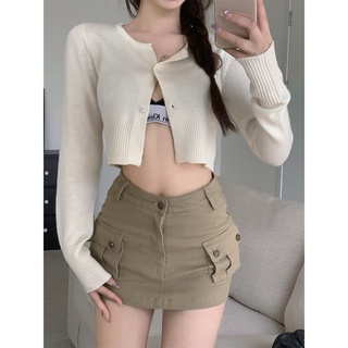 Suhao perkakas rok perempuan khaki hot girl pinggang tinggi dan tas tipis pinggul rok pendek musim panas 2022 baru rok in pasang