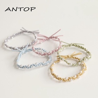 Aksesoris Gelang Rambut Bahan Karet Aksen Mutiara Warna Permen Untuk Wanita