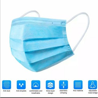 Masker 3 Ply 3Ply isi 50 disposable Masker Anti virus Tebal Earloop Biru kemenkes