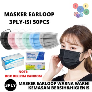 Masker 3ply isi 50pcs / Face mask / Disposable mask / Masker 3ply earloop isi 50pcs WARNA