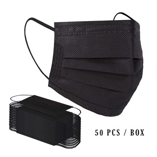 M3BX isi 50 pcs disposable black mask 3ply polos masker debu korea hitam carbon filter