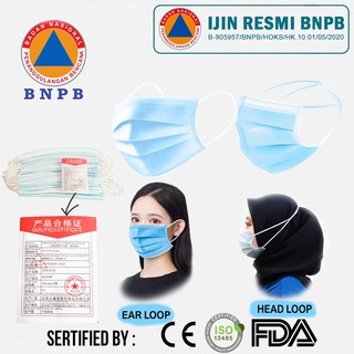 READY Masker SURGICAL Medis 3ply Disposable Mask 3 Ply Earloop 1 box isi 50 pcs IZIN BNPB