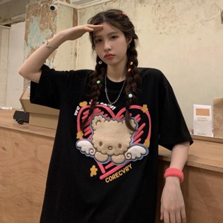 [littlecrab] Kaos Oversize Beruang Bulu Bersayap Corecvry Love Sablon Timbul We Love The Earth T-shirt Couple Unisex Lembut Berkualitas Motif Wings Bear With Love Unik Simple Korean Style