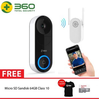 QIHOO D819 360 Smart Doorbell IP Camera CCTV WIFI AI Face + 64GB kamera pengintai