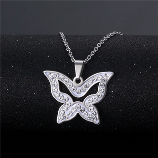 Eropa hip hop ornamen titanium baja berlian kalung kupu-kupu tanah liat sederhana rhinestone liontin