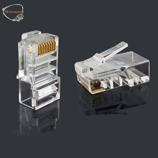 Mxbeauty 100pcs Konektor Kabel Jaringan Pass Open End Ez Tembus Rj45 Cat5 Cat5E Cat6 Multi Warna