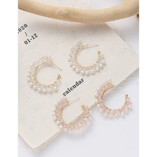 LRC Anting Hoops Fashion Gold Color+white Pearl Decorated Earrings