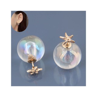 LRC Anting Tusuk Fashion Gold 925 Silver Needle Ball Starfish Earrings A58948