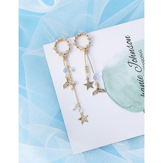 Anting S925 Silver Needle Bentuk Bulan Bintang Asimetris Bahan Zirkon Gaya Korea