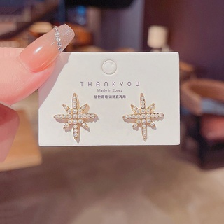 Anting Stud Desain Bintang Aksen Mutiara Bahan S925 silver needle Untuk Wanita