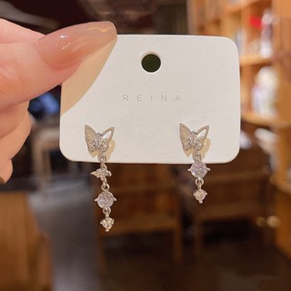 Anting Stud Desain Kupu-Kupu Bahan 925 silver needle Untuk Wanita Butterfly