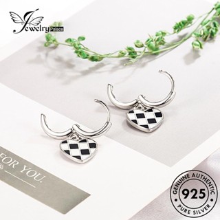 Jewelrypalace Perak925 Grid Canggih Putih Wanita Anting Dan Hoop Asli Hitam E696