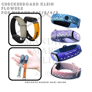 Strap Xiaomi Miband 7/6/5/4/3 Checkerboard Flowers Print Tali Pengganti Cantik Xiaomi Mi Band 7 6 5 4 3