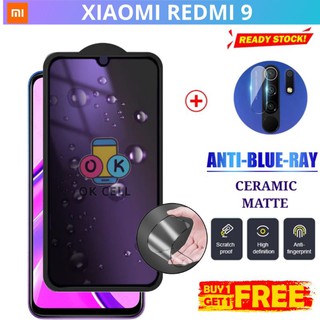 2in1- Tempered Glass Ceramic Blue Matte Light Redmi 9 TG Anti Gores Full Layar Screen Protector