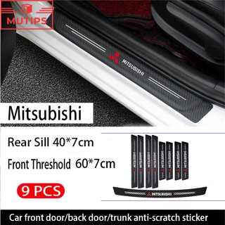 Mitsubishi 9Pcs Stiker Pintu Mobil Carbon Fiber Sill Protection Auto Anti Gores Anti Slip Untuk Kuda Lancer Pajero Xpander Mirage Outlander Attrage