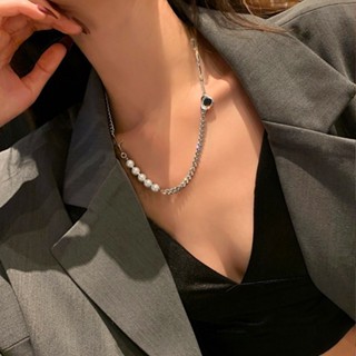 Kalung Mutiara Wanita Disco Gadis Panas Hip-Hop Baja Titanium Sweatshirt Rantai Panjang Pria Street Wear Rantai Tinggi Jalan