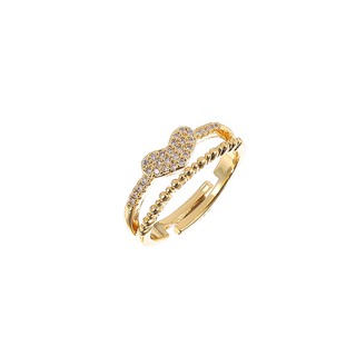 LRC Cincin Fashion Golden Copper Inlaid Zircon Love Ring V13541