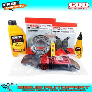 PAKET SERVICE MIO J FINO FI 115 XRIDE 115 SOUL GT 115 MIO GT KAMPAS REM DEPAN BELAKANG FILTER UDARA BUSI OLI YAMALUBE MATIC OLI GARDAN MIO J 54P