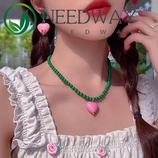 Needway Sweet Korean Style Necklace Niche Bead Neck Chain Love Heart Earrings Necklace Design Sense Women Jewelry Clavicle Chain Great Gift Fashion Jewelry Girl Pink Heart Earrings