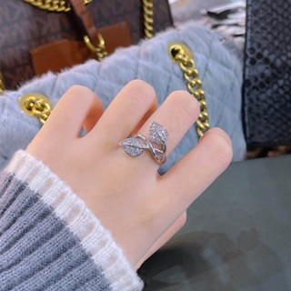 Goldkingdom Aksesoris Perhiasan Fashion Ready Stock Ringan Mewah Dan Desain Penuh Zirconium Daun Cincin Telunjuk Cincin Perempuan