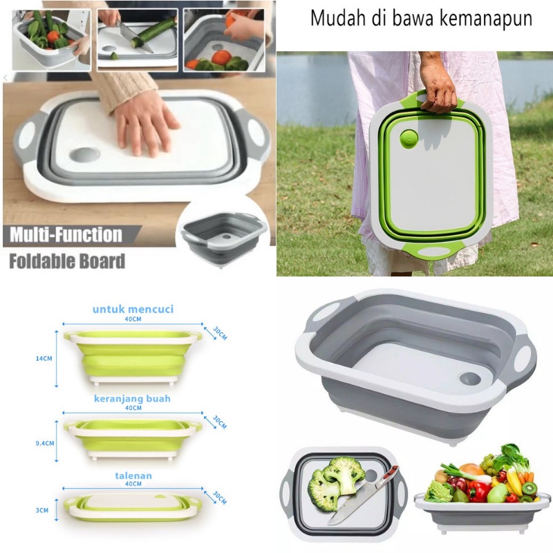 DESKRIPSI PRODUK : BASKOM TALENAN LIPAT MULTIFUNGSI 3IN1 / BASKOM TALENAN PORTABLE SERBAGUNA / WADAH TEMPAT CUCI BUAH DAN SAYUR DAPUR / CUTTING BOARD PORTABLE