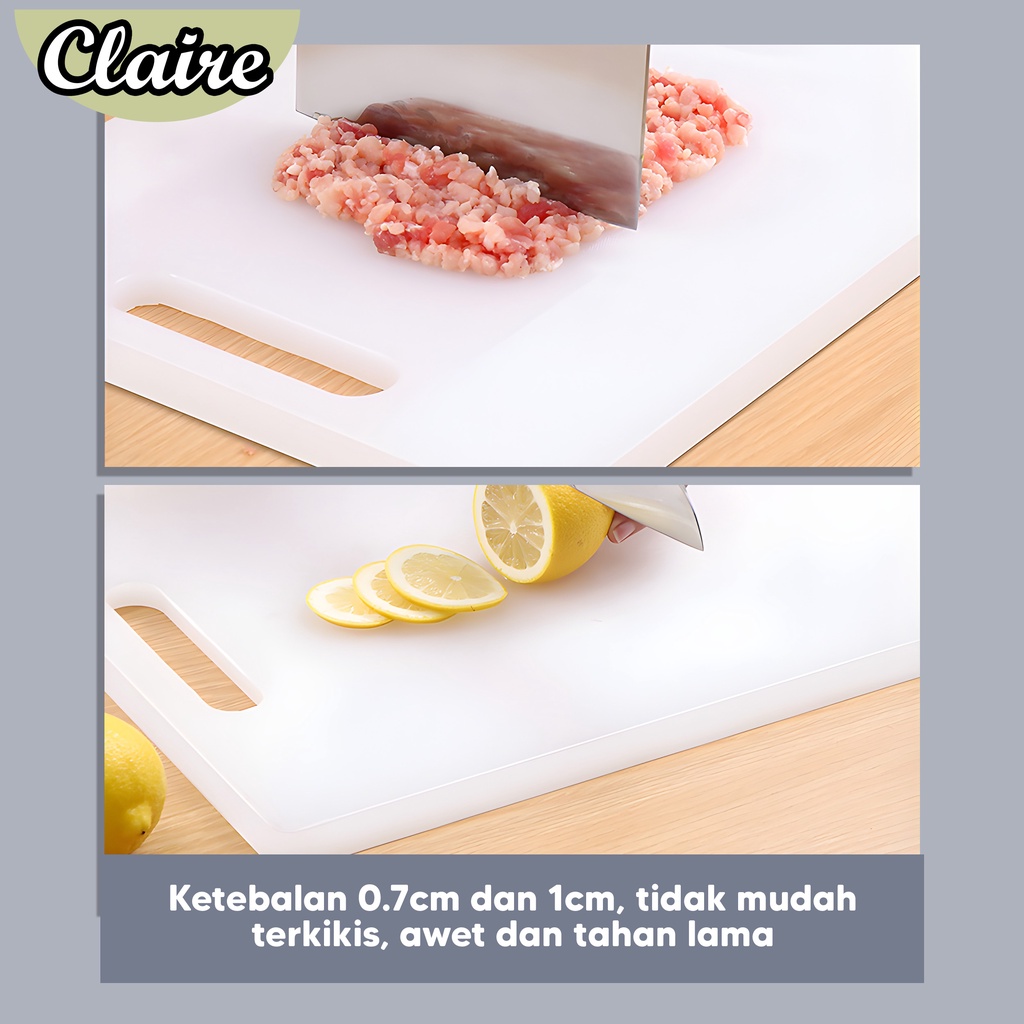 Talenan tebal dengan bahan plastik aman (food grade material), restaurant / pedagang daging dan untuk perlengkapan dapur wajib punya, untuk mempermudah potong / cacah daging, sayur, buah, ikan, kue dan keju, bahan food grade anti kuman resists cracking resists wraping resists choping durable easy to clean