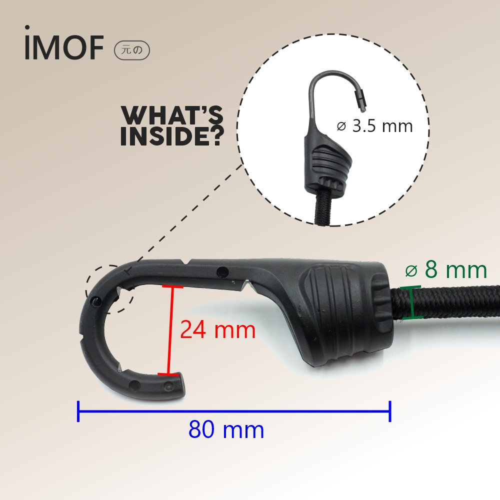 Detail Tali Bungee Premium IMOF 8 mm x 60 cm Kait Baja Dilapisi Plastik Tebal